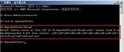 第37行ServerRoot "c:/Apache24"改为ServerRoot “D:/Apache24”;//Apache程序的位置。